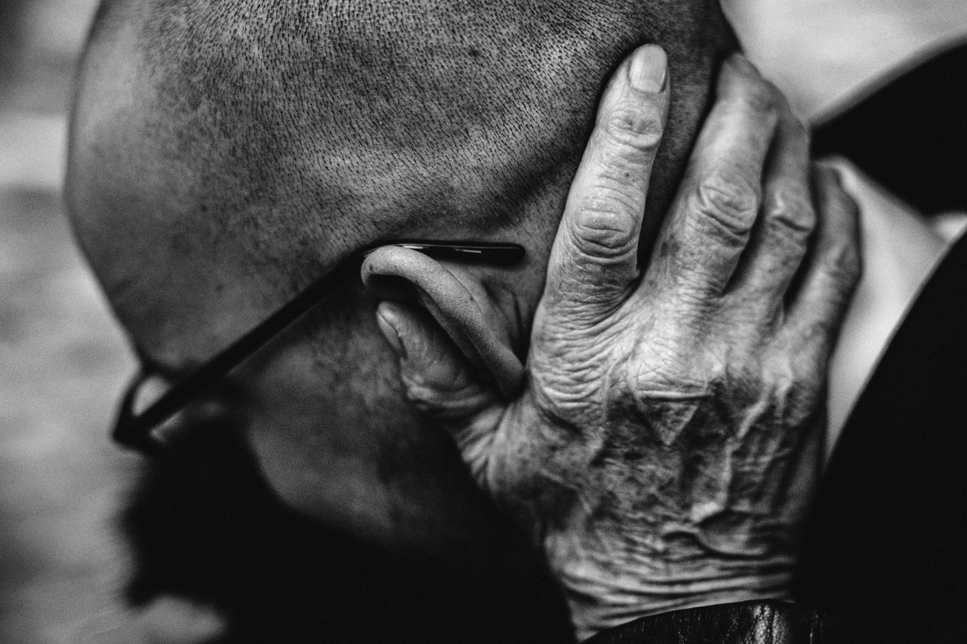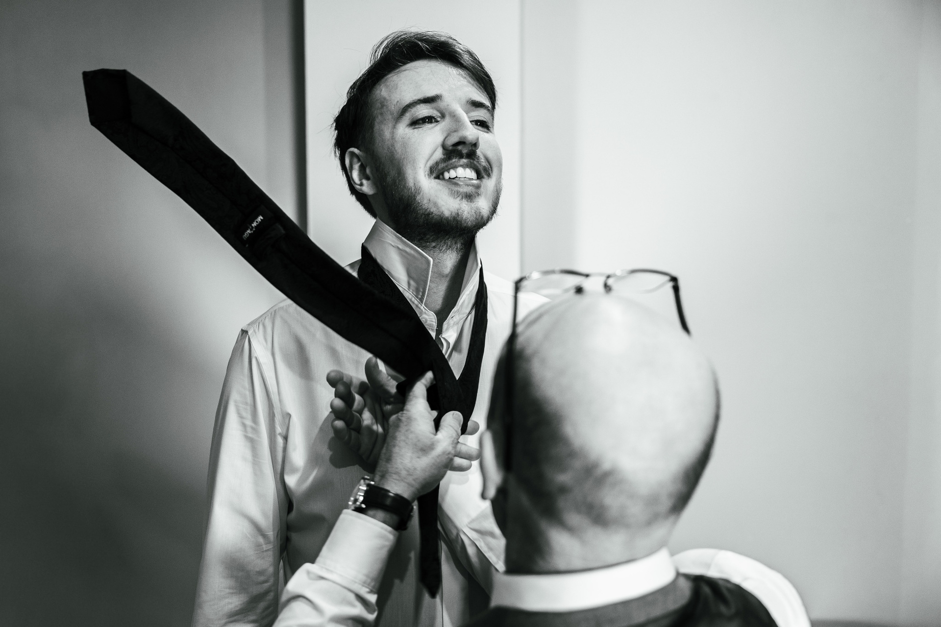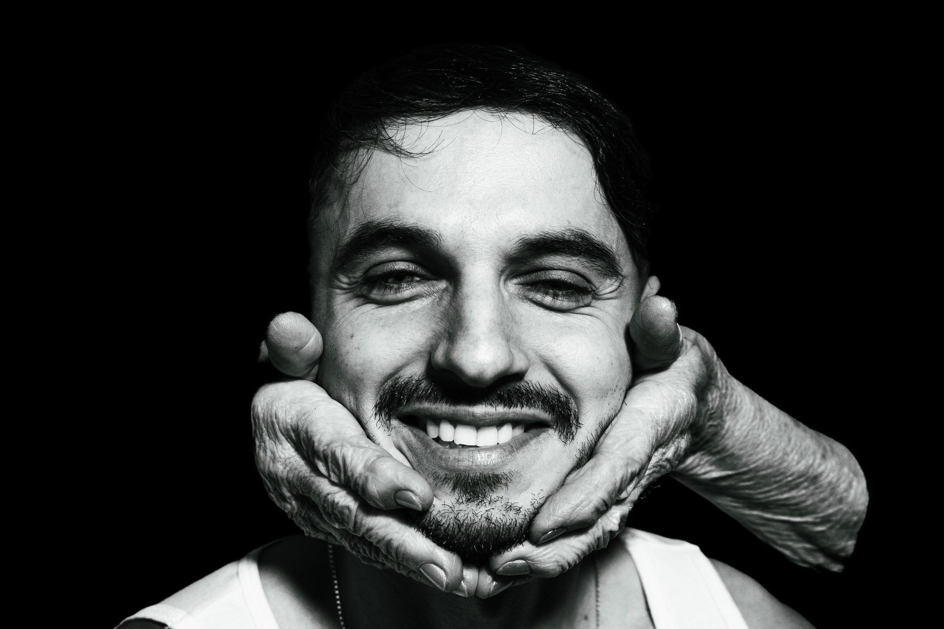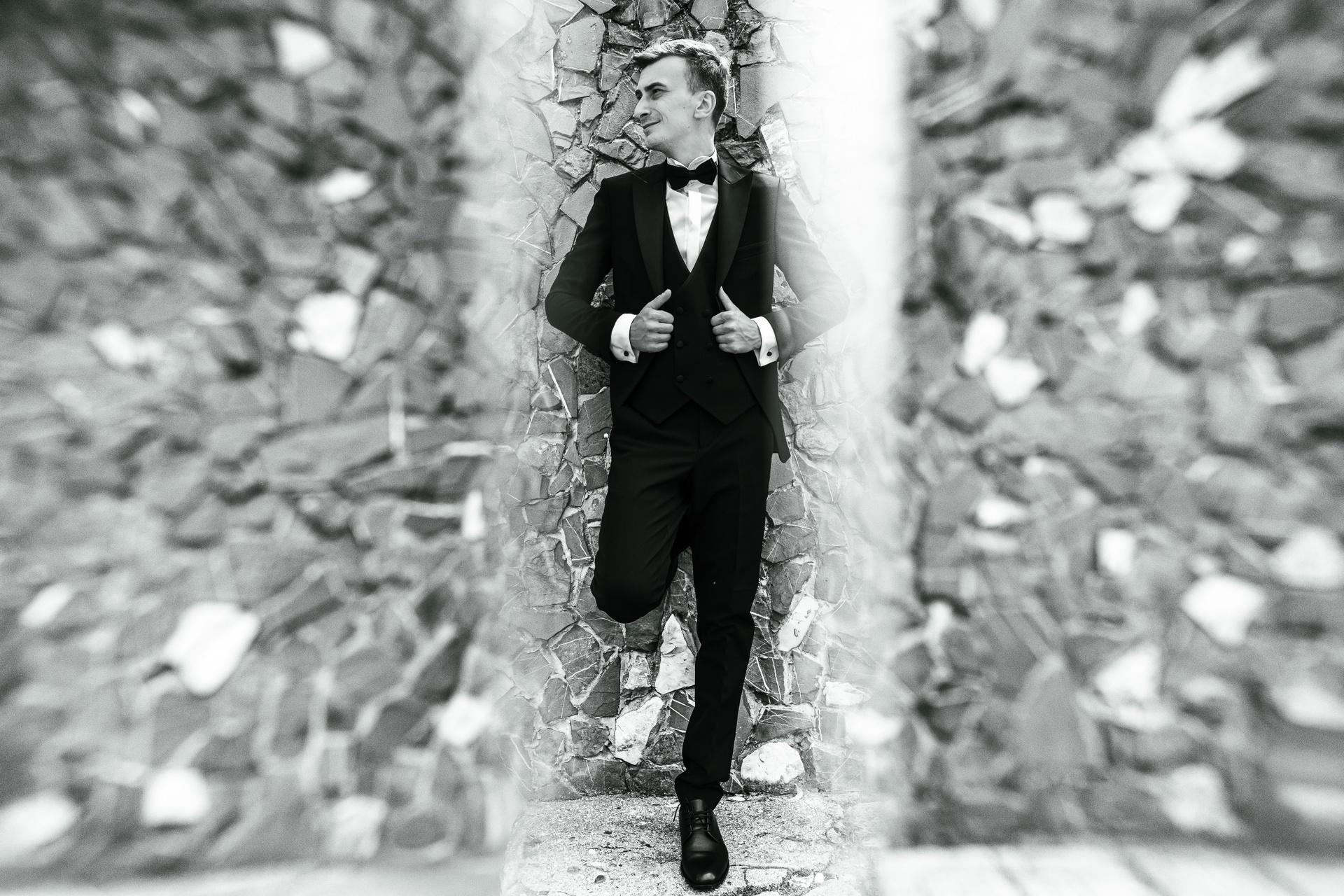 Cuplu în ipostază intimă, fotografiați în stil editorial alb-negru